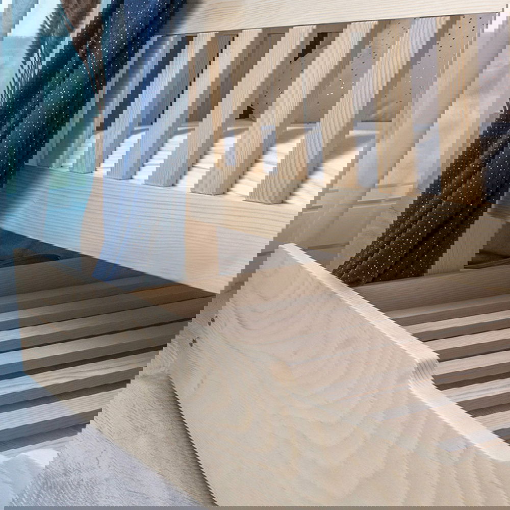 Structura sertarului este confecționată din lemn masiv de pin de calitate superioară, recunoscut pentru durabilitatea și rezistența sa. Suprafața lemnului este atent finisată prin șlefuire și lustruire, oferindu-i o textură fină și plăcută la atingere, asigurând o suprafață complet netedă, ideală pentru un mediu natural și sigur.