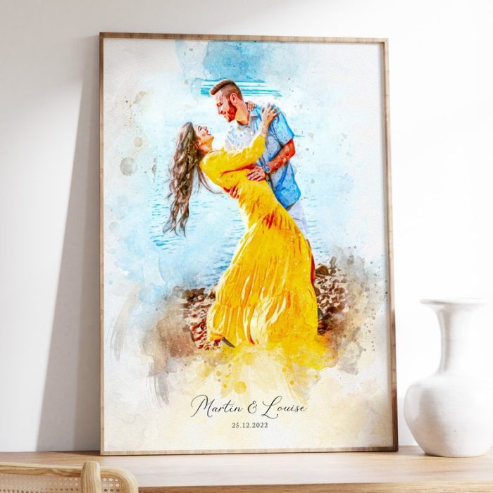 Descoperă cadoul ideal cu un tablou personalizat tip acuarelă, realizat după fotografia ta preferată. Designerii noștri talentați creează manual fiecare lucrare, surprinzând esența persoanelor dragi prin tehnici de înaltă calitate și atenție la detalii.