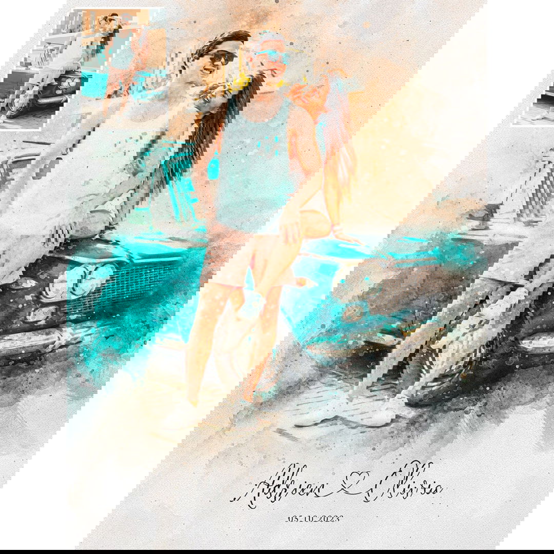Tablou personalizat în stil pictură cu acuarelă (Watercolor) cu fotografia ta